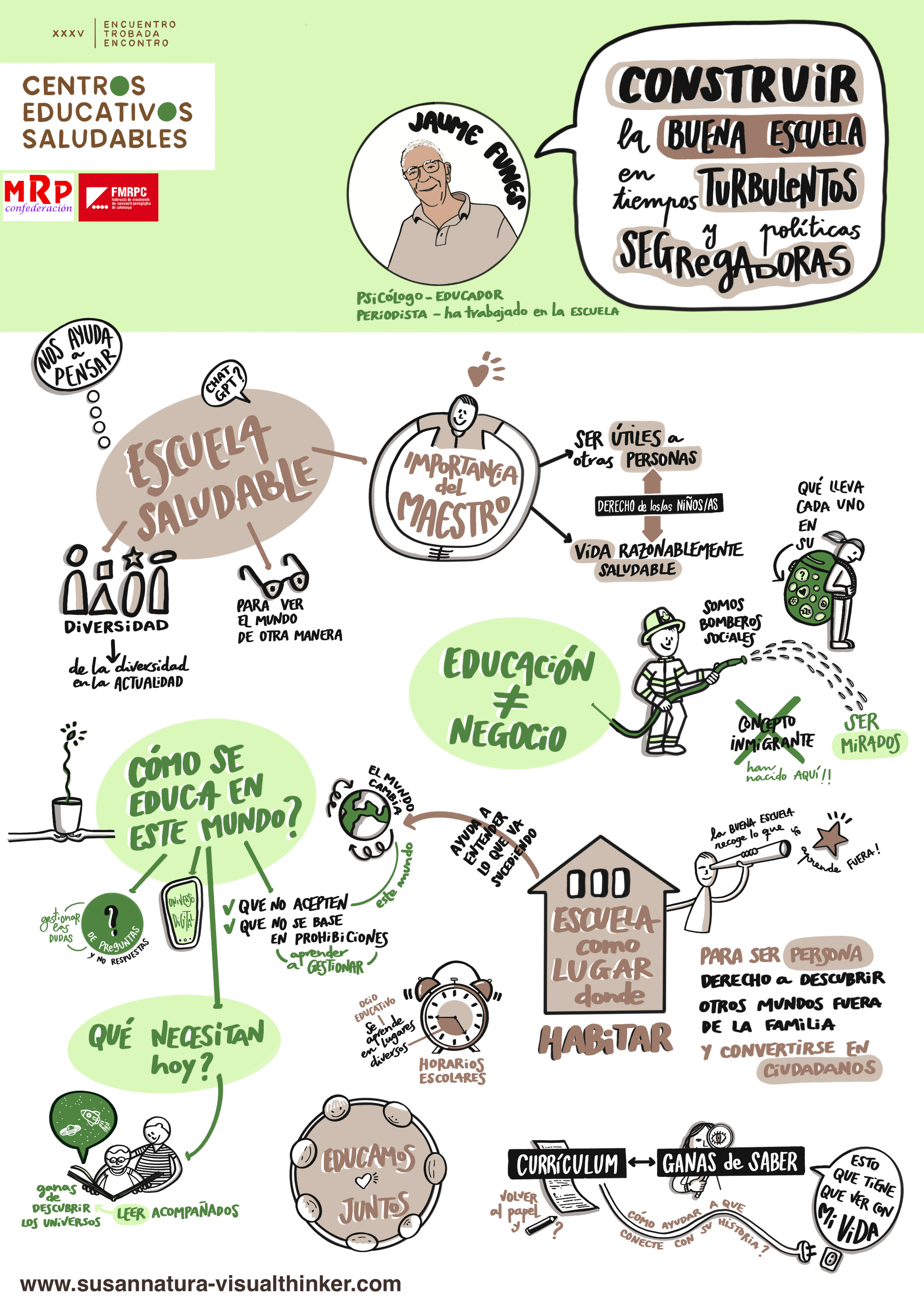 Gran professional que va saber captar amb dues converses pedagògiques quina era l'essència de la nostra escola i del nostre projecte educatiu. El resultat final dels seus dibuixos van tenir un gran impacte en les persones de la comunitat educativa i, sobretot, en les persones que no ens coneixen. D'altra banda, la Susanna destaca per les seves qualitats com a persona: creativa, positiva, honesta, responsable i propera. Ha estat un plaer conèixer-la i haver compartit amb ella la nostra mirada educativa com a escola innovadora que som.